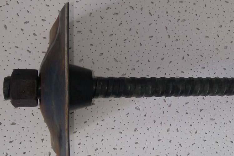 3、安裝止漿塞、墊板、螺母:在錨桿尾端安裝止漿塞、墊板和螺母。